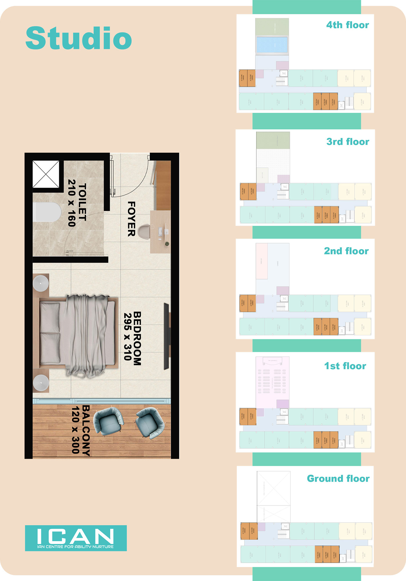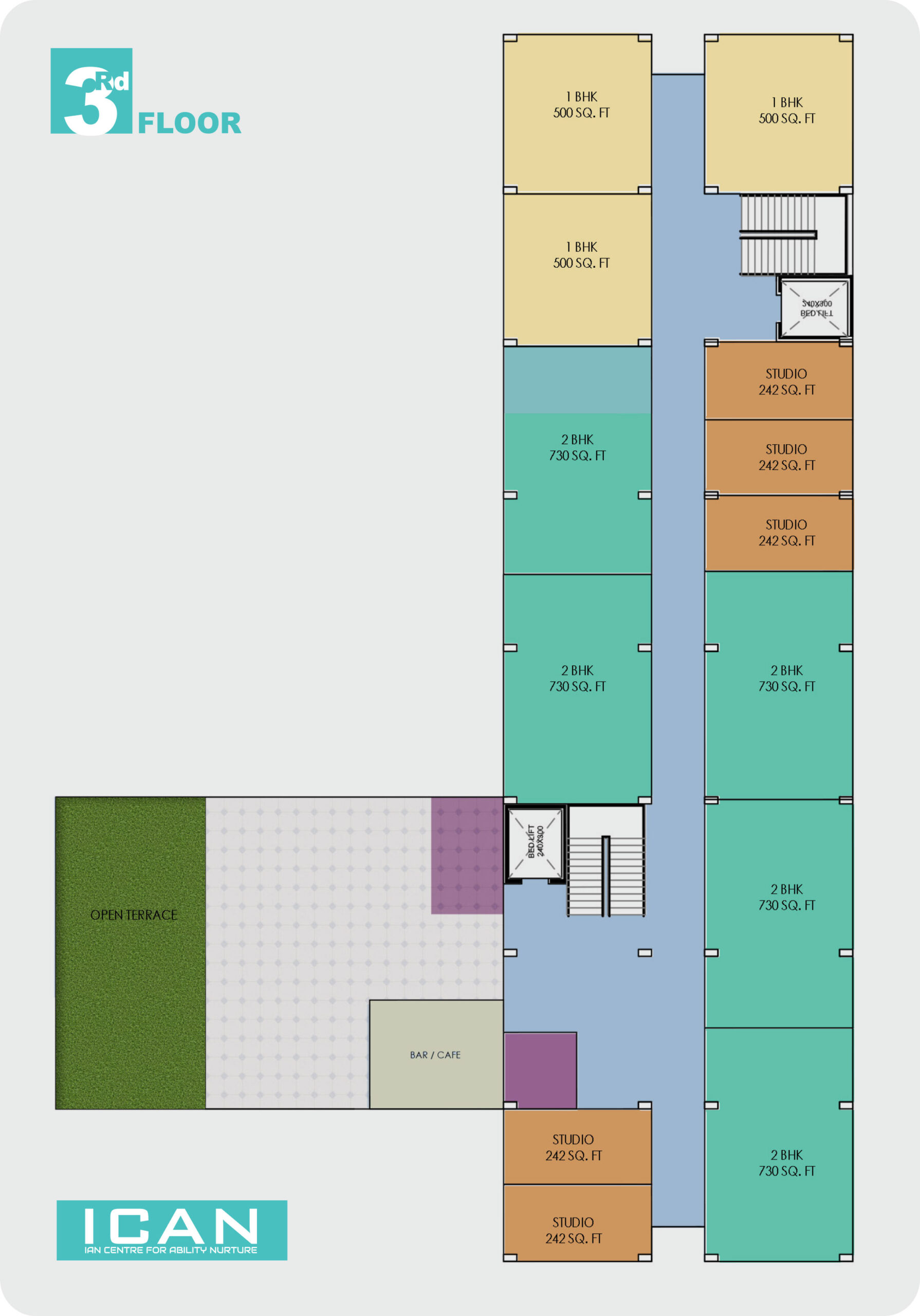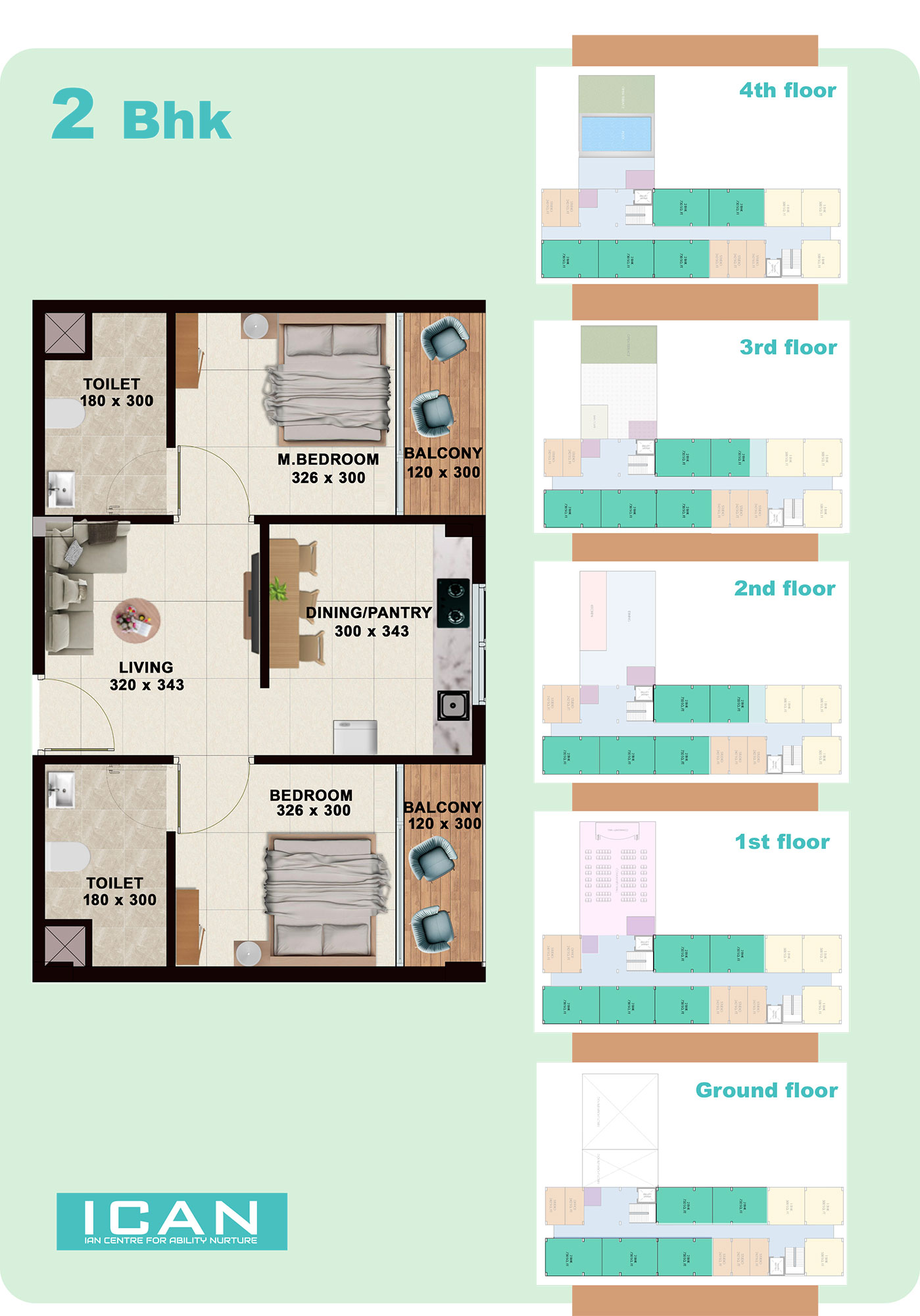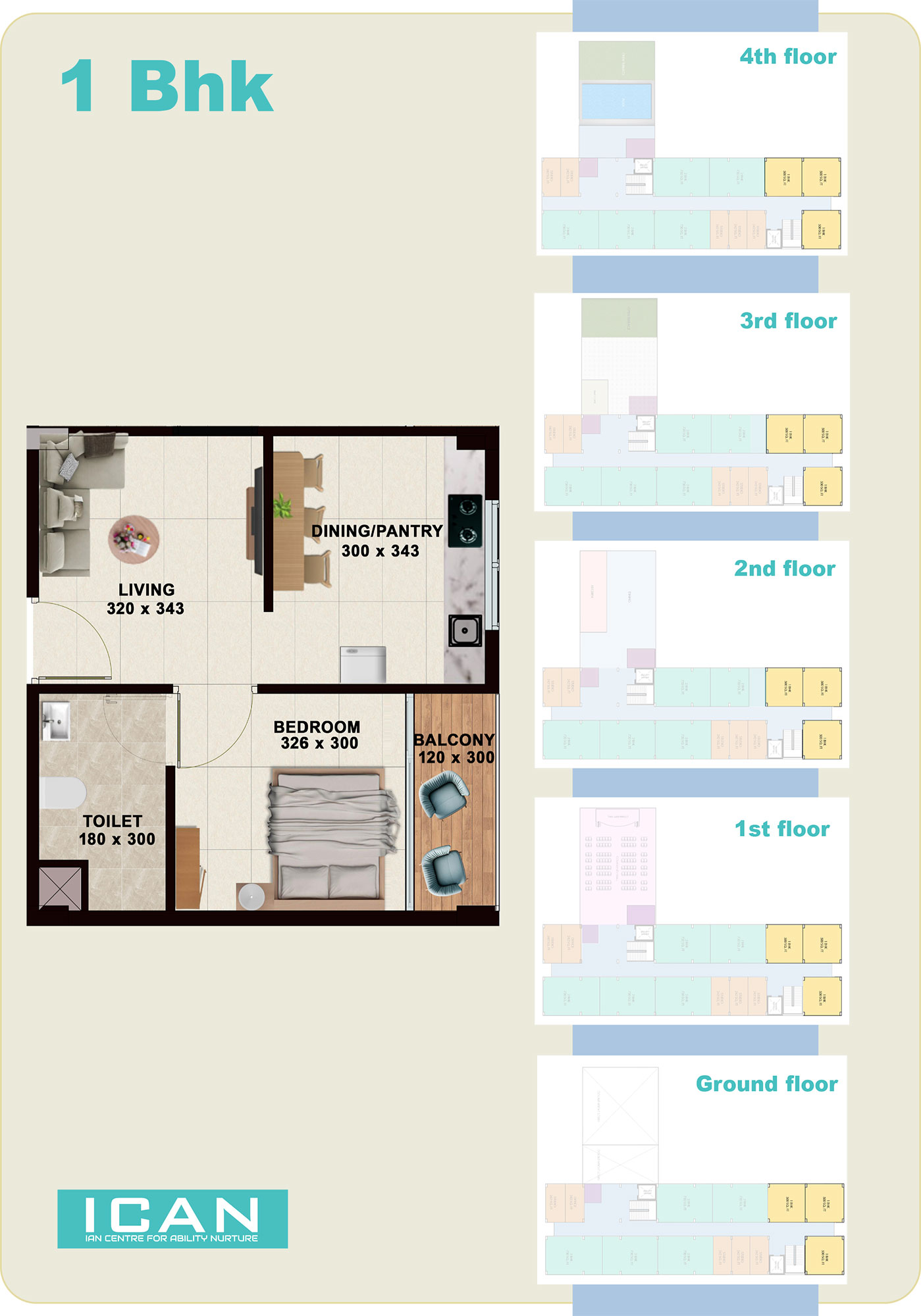 ICAN - Infrastructure ICAN Centre Site & Floor Plan Site Plan Ground Floor 1st Floor 2rd Floor 3rd Floor 4th Floor 1BHK, 2BHK & Studio Plan 1 BHK 2 BHK Studio